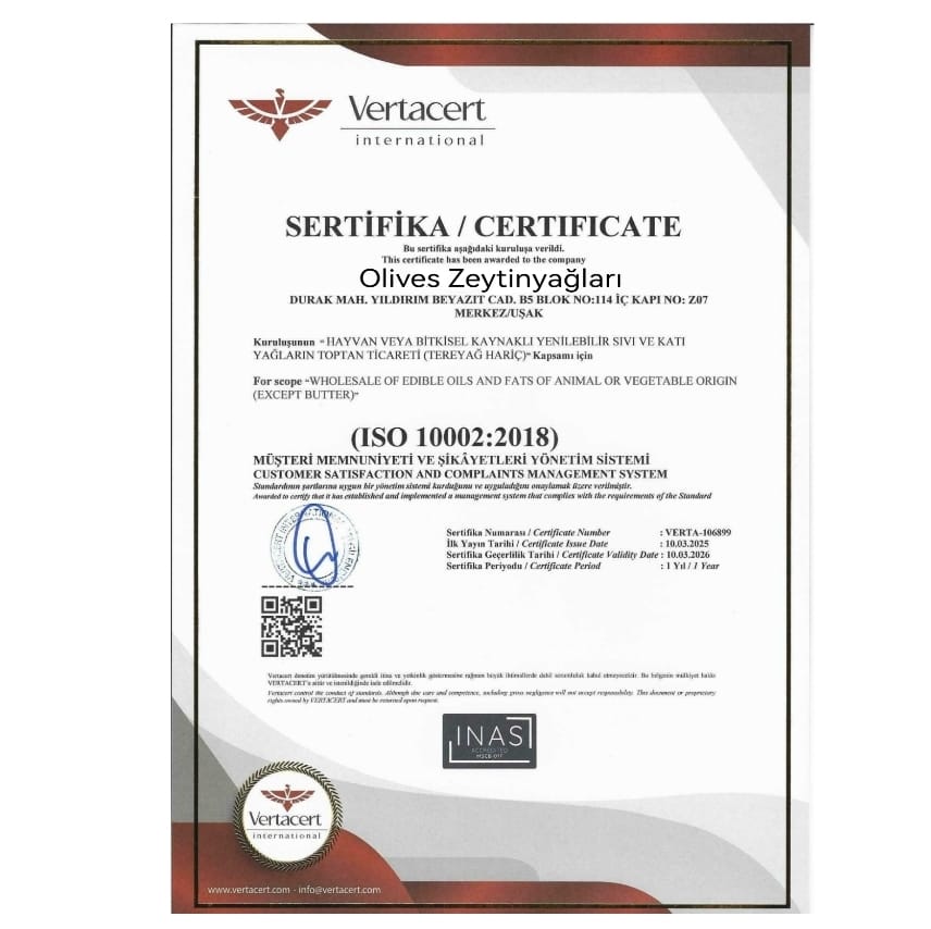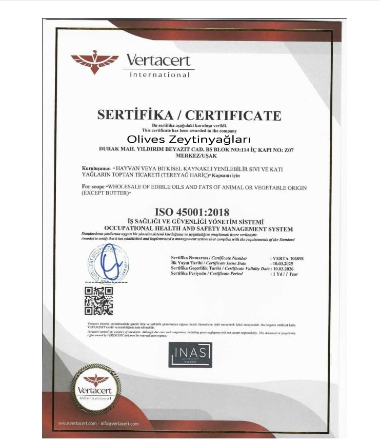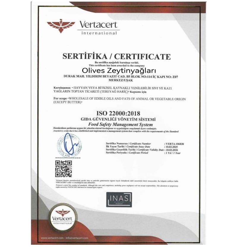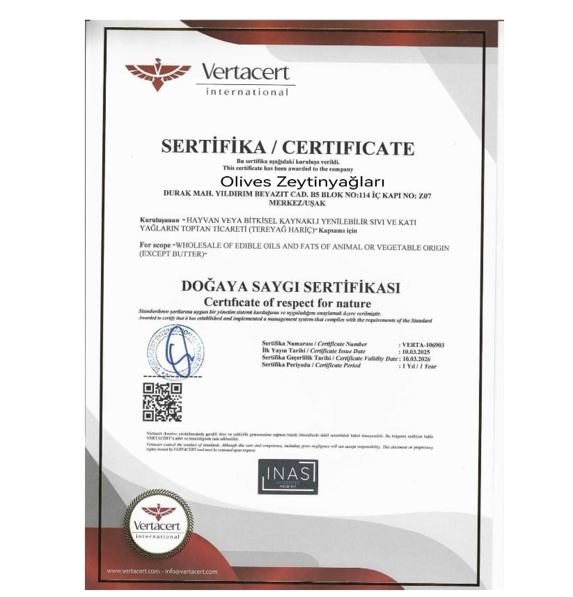 Zeytinyağımızın Kalitesi Belgelerle Sabit